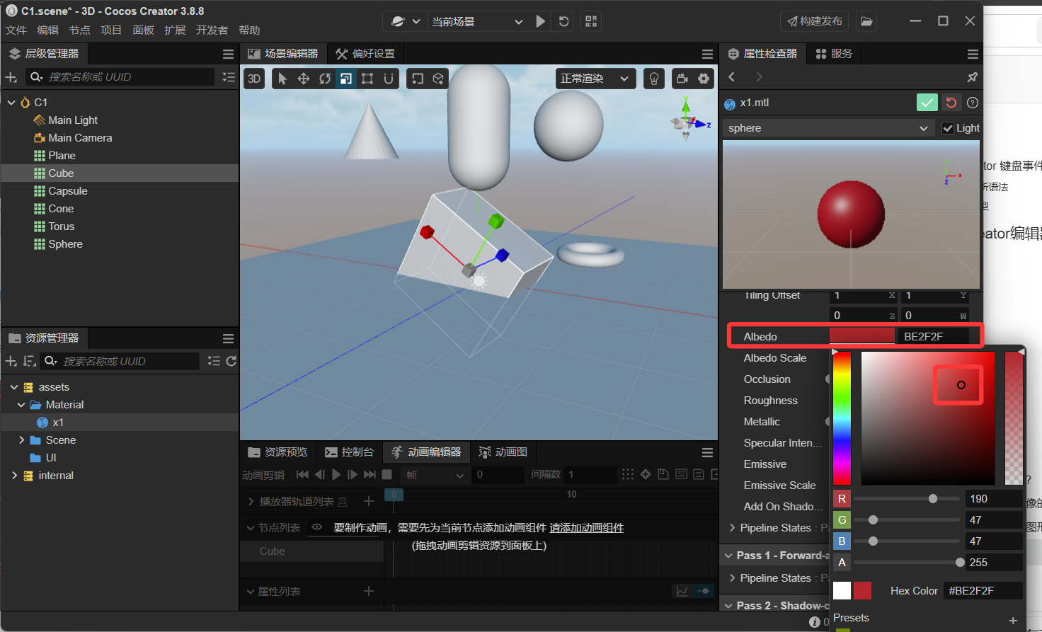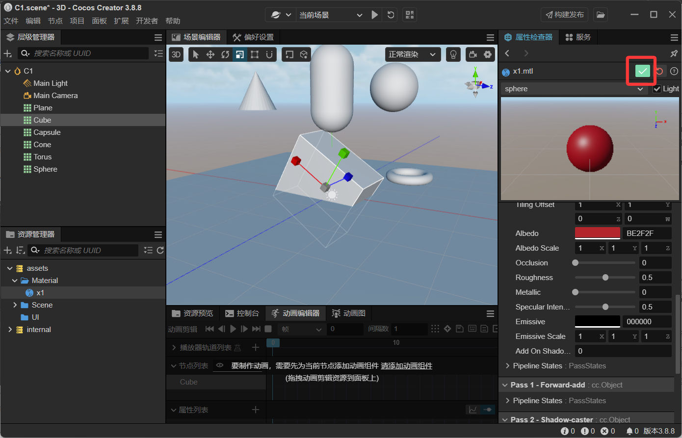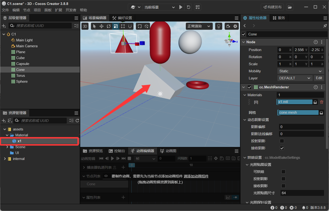在material目录下创建一个材质文件,重命名为x1