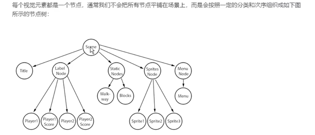 - 1个游戏是由多个场景组成的,1个场景是由多个节点组成的,1个节点是由多个组件组成的。