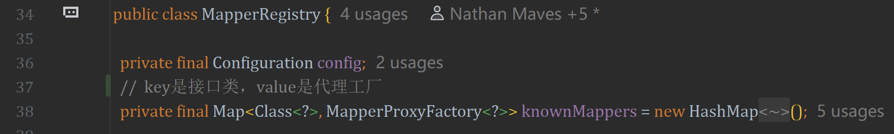 - Configuration#mapperRegistry属性,记录着mapper接口与其代理工厂