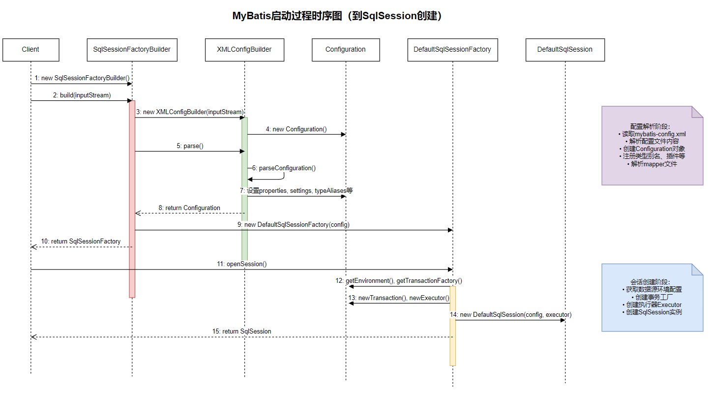 经过以上步骤,创建了一个包含了MyBatis需要的所有配置Configration对象,接着会创建一个