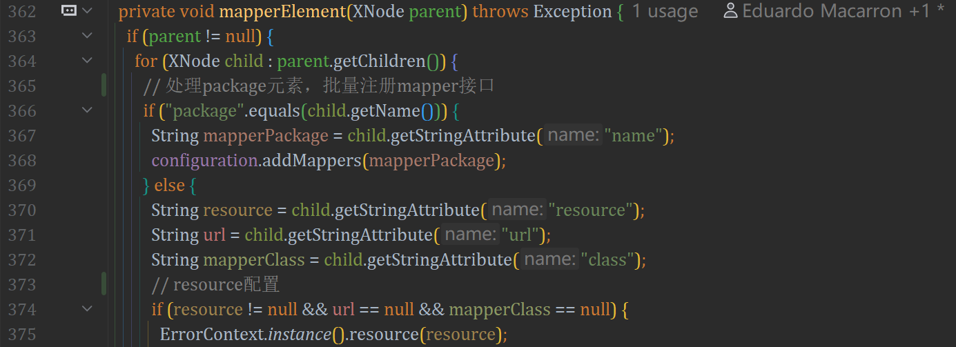 在XMLConfigBuilder#mapperElement中,分别处理了以上几种配置方式: