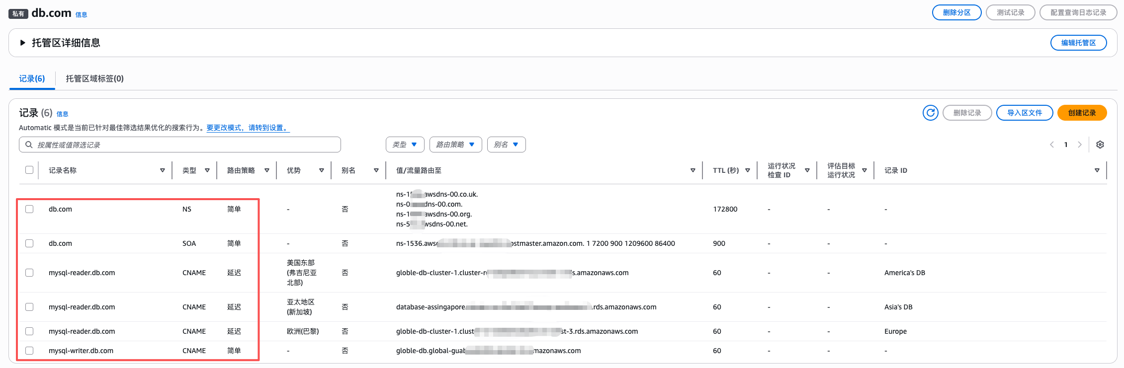 7、将二级域名指向到Aurora的写域名指向到Aurora的写入器实例的DNS(路由策略:简单),