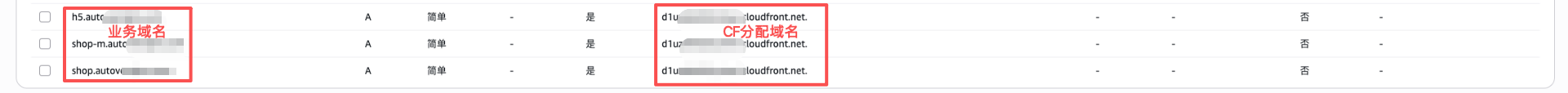 11、在Route 53将经过CloudFront加速的域名指向到CloudFront分配域名上。