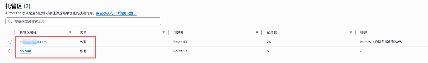 6、在Route 53创建一个私有的短域名,用于数据库连接,无需在域名供应商购买。我这里用 db.com