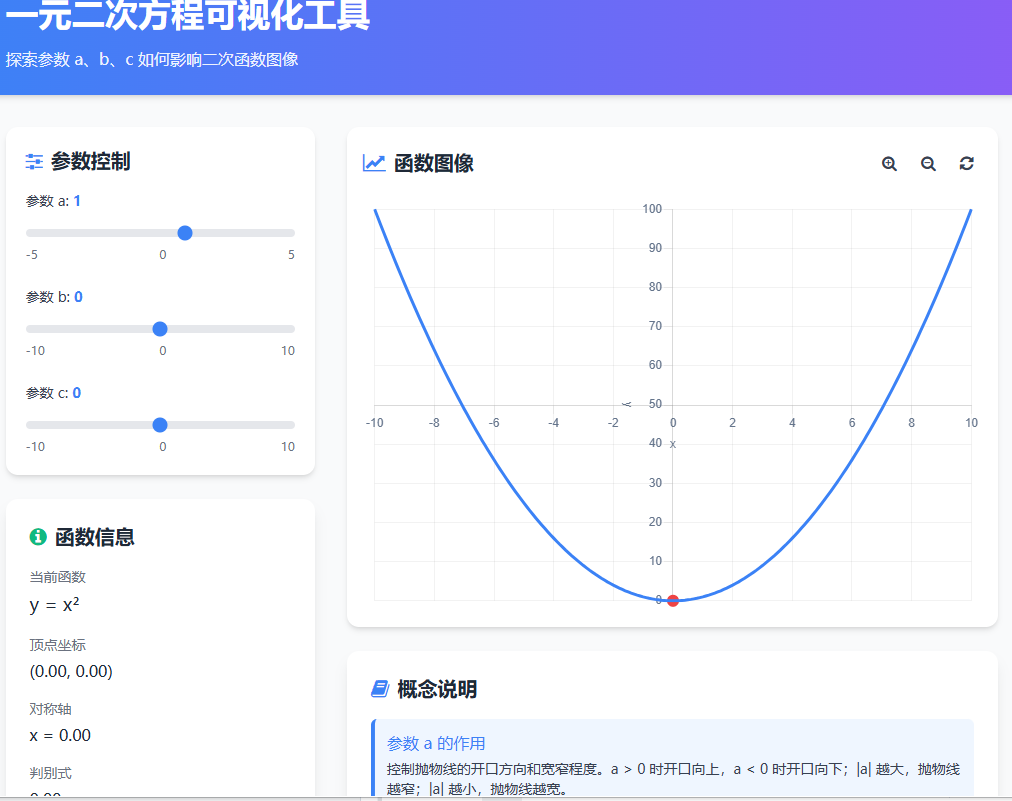 可以在页面上调整参数,右边函数图像就会发生变化,页面中还给出了相关概念的说明。