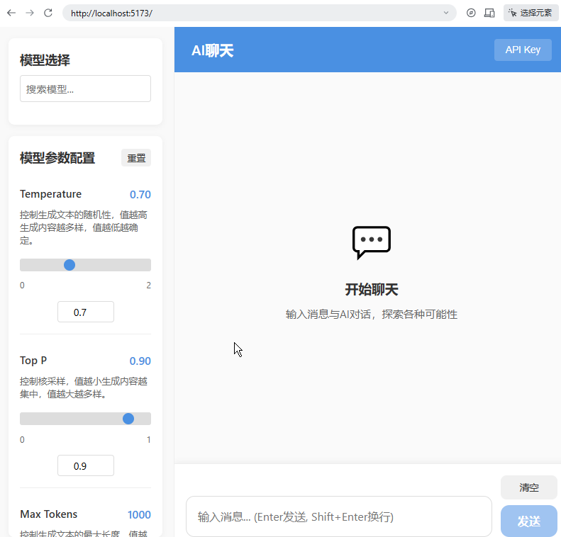 3) 模型参数配置面板,支持调整temperature、top_p、max_tokens等核心参数;