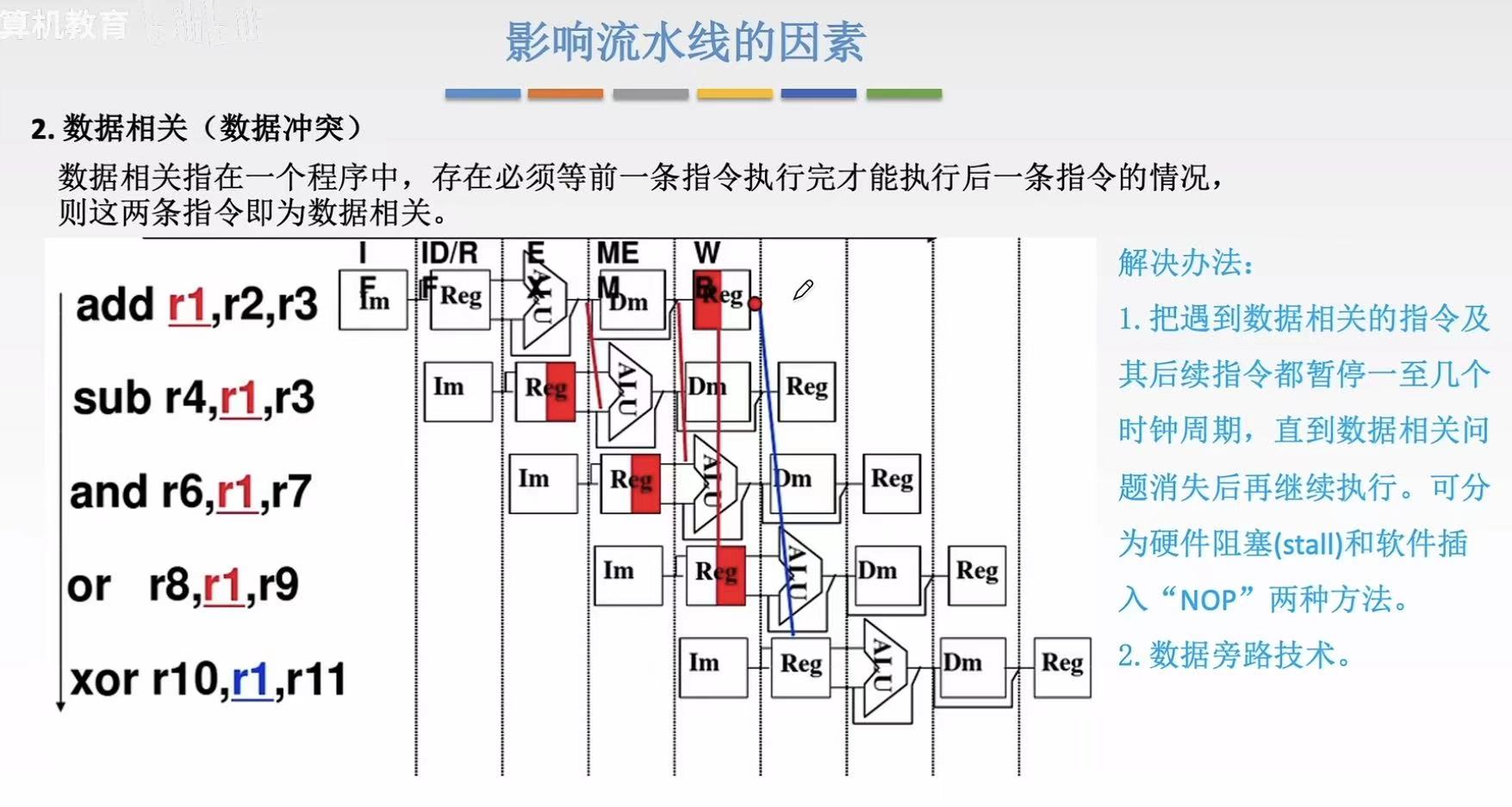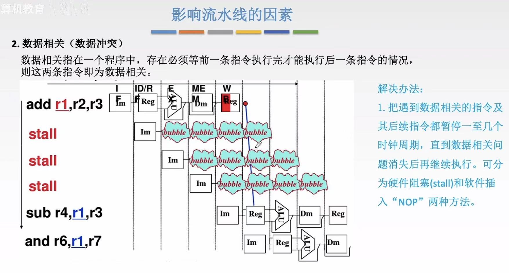 硬件阻塞: - 就是在上一步的结果没出来之前,通过插入 'bubble'(空操作)来填充因数据依赖而暂停的时钟周期,实现硬件阻塞(stall)