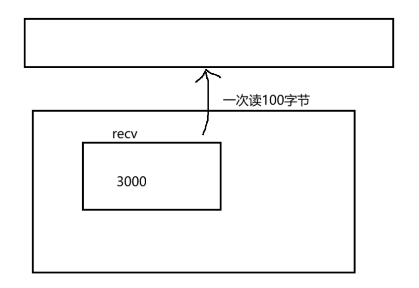 上图假设Recv缓冲区此时来了3000个数据,而读取一次读100字节。但由于我们是处在上帝视角下因此我们直到Recv有3000个数据,而上层是不知道的。所以当上层读了30次数据后,第31次你读不读?答案是肯定读。那么这一读取就出问题了,由于缓冲区没有数据,recv就会阻塞住,本来我们采用Epoll就是为了不让进程陷入单独的阻塞调用模式。