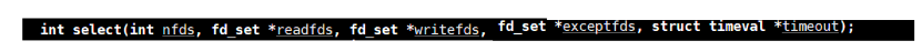 如果传入的timeout结构体为 NULL 表示阻塞调用select直到有fd就绪才返回,如果为0表示非阻塞调用。而如果在结构体里设置具体时间则表示,在单位时间内阻塞调用,超时返回。