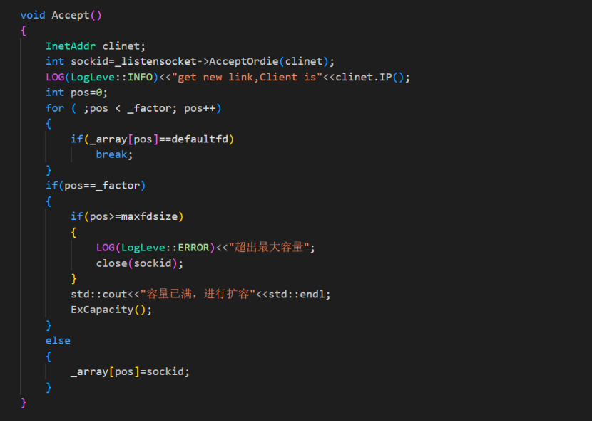 // virtual std::shared_ptr<Socket> Accept(InetAddr *client) = 0;