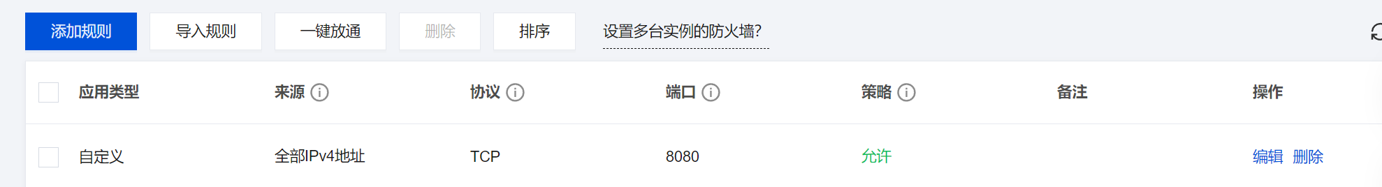 - 找到 "安全组" 配置,添加一条入站规则 :