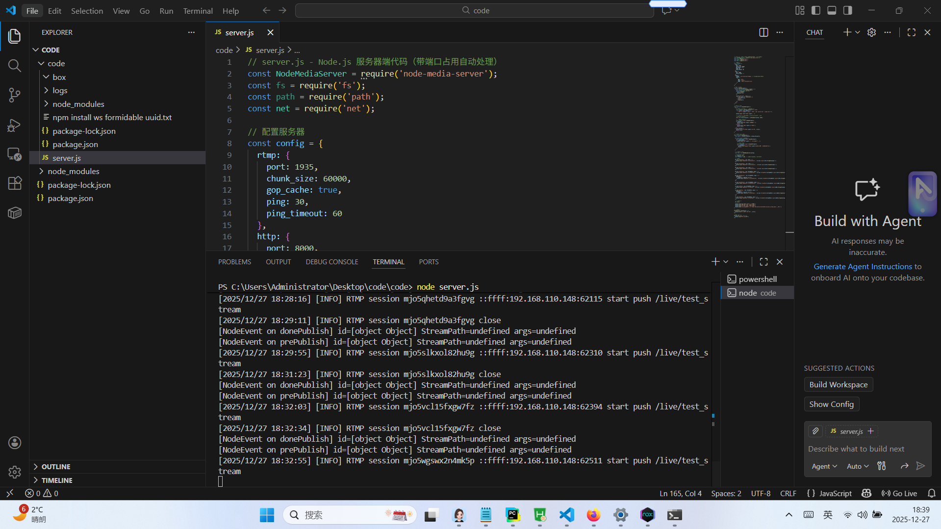 node服务器端使用一个node-media-server,完成音视频通话的功能,另外192.168.110.148是局域网ip