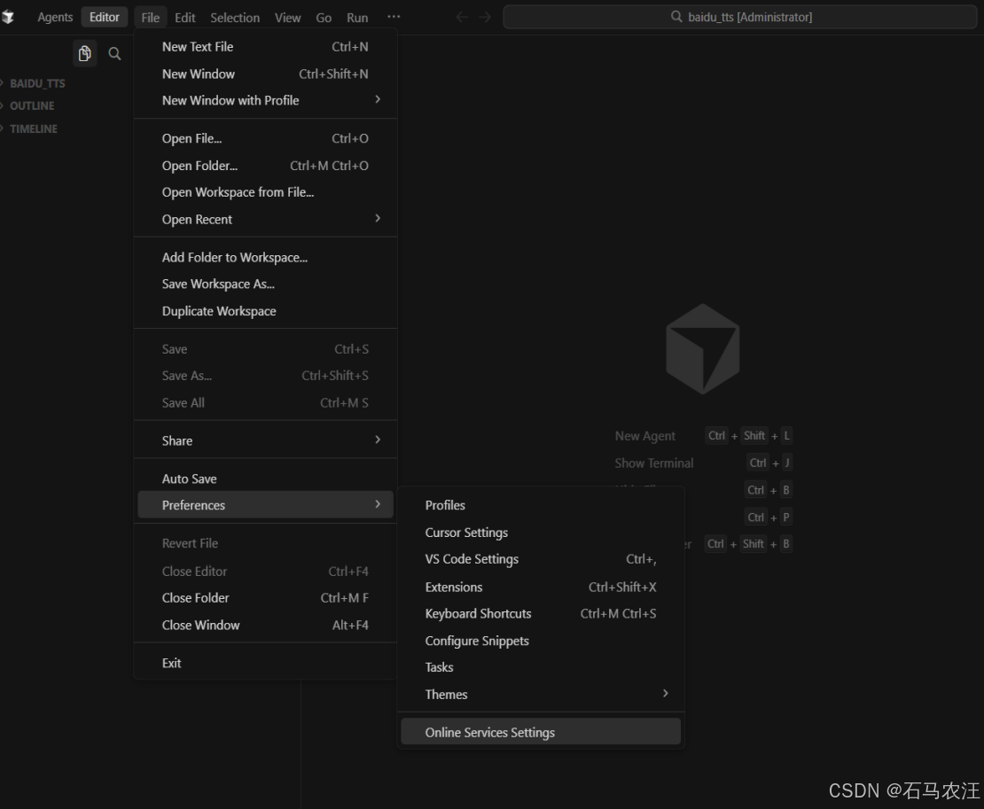 打开设置:File → Preferences → Settings(或 Ctrl+,)