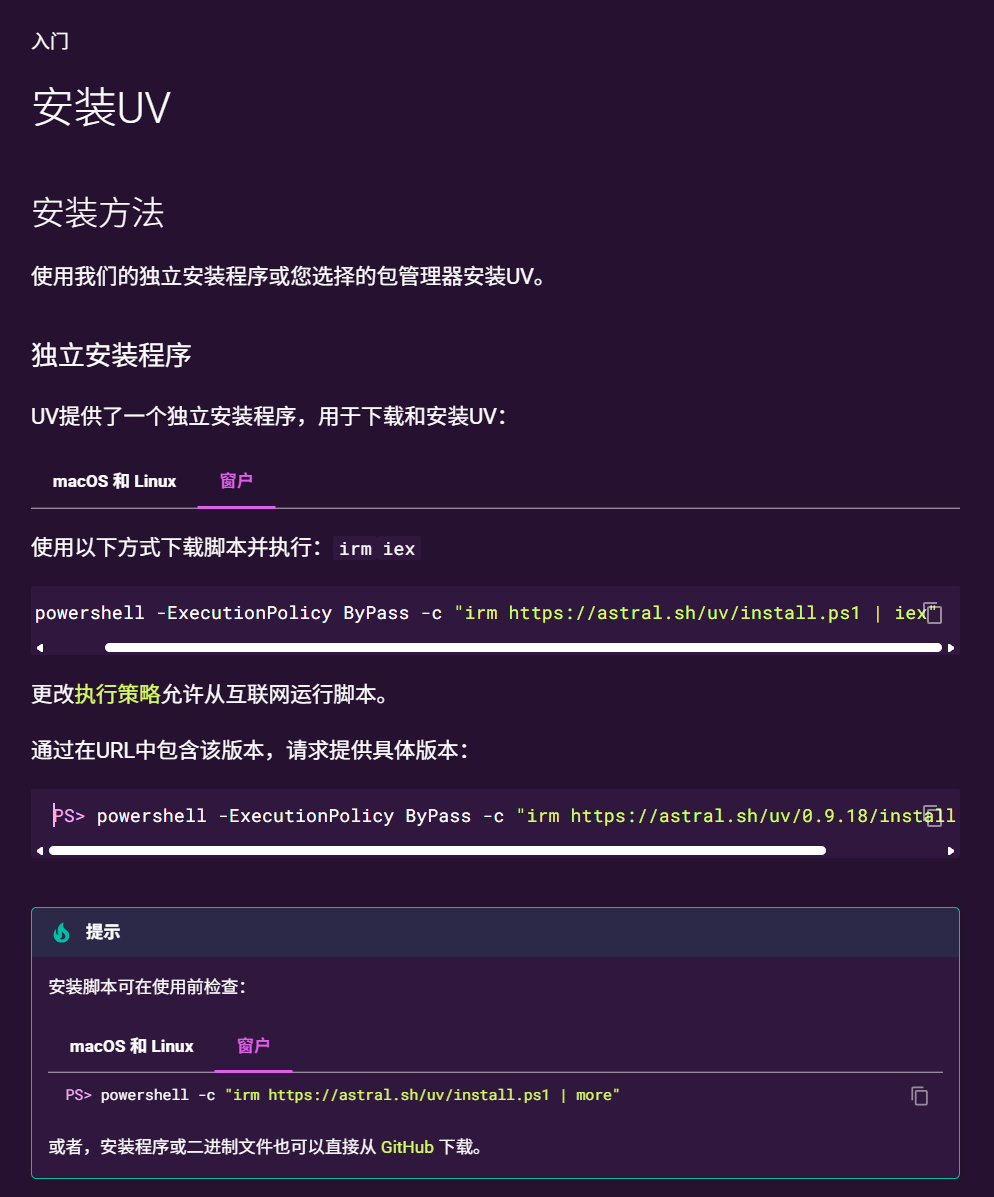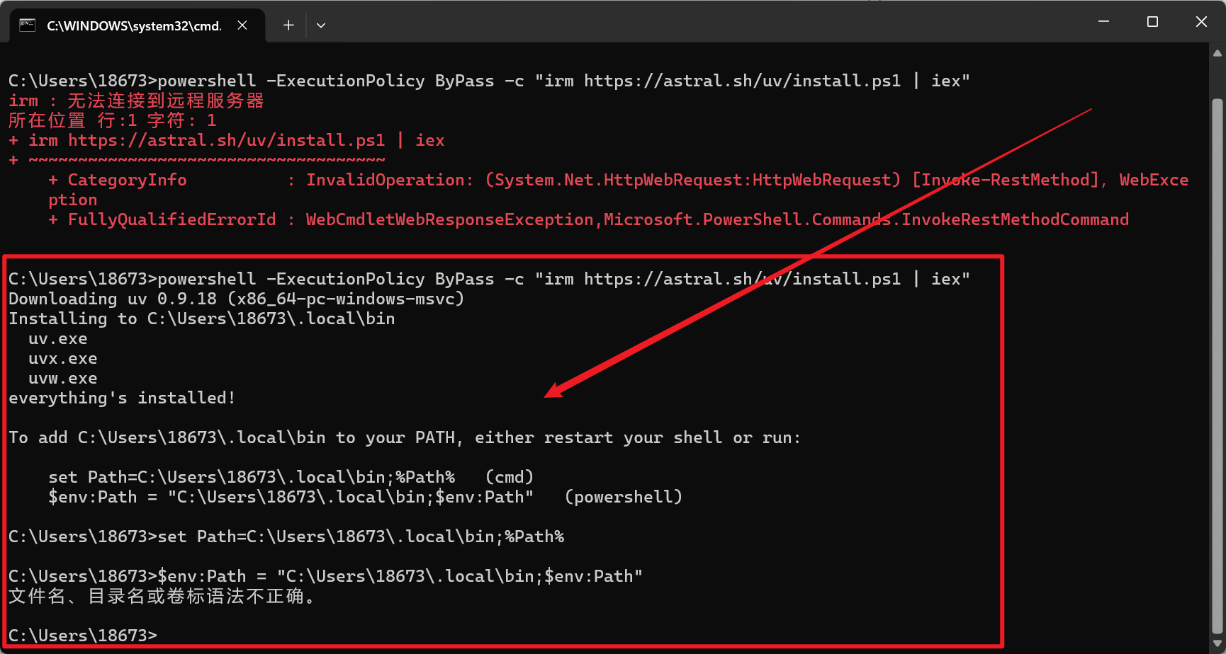 powershell -ExecutionPolicy ByPass -c "irm https://astral.sh/uv/install.ps1 | iex"