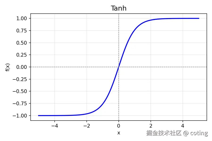 - 优点:输出在 (-1,1),比 sigmoid 居中,对梯度更友好