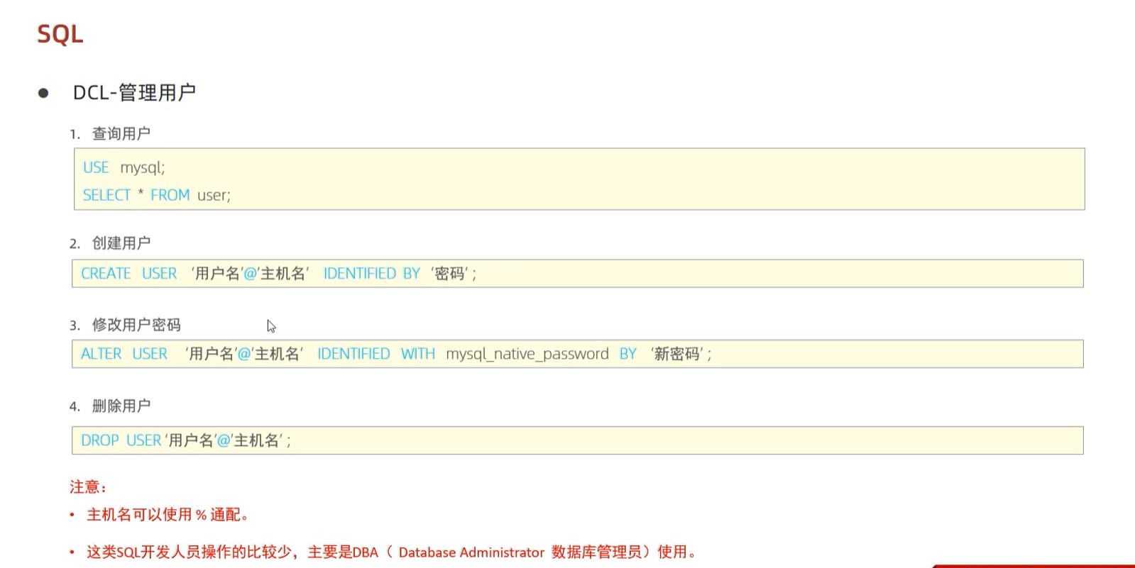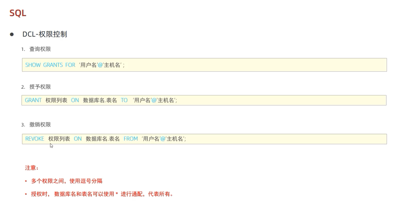 💡 关键认知:DCL不是"数据操作语言",而是"数据访问控制语言"。它不处理数据本身,而是控制"谁可以操作数据"。