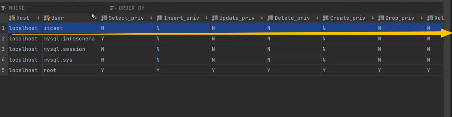 localhost指的是:主机。我们要去创建一个用户和删除一个用户,需要通过用户名和host主机地址同时定位。这个主机指的是当前这个用户只能够在哪一个主机上访问当前的MySQL服务器。那么localhost代表了只能在本机访问,不能远程访问。