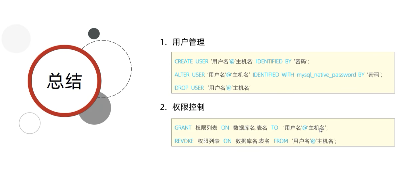 - 授权:指定用户可以执行的操作(如SELECT、INSERT)