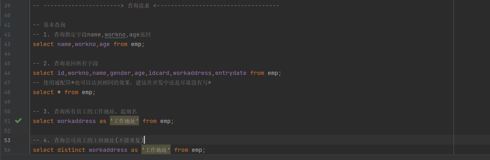 小贴士 :在生产环境中,永远不要用*,除非你确定需要所有字段。精准查询能显著减少网络传输和数据库压力。