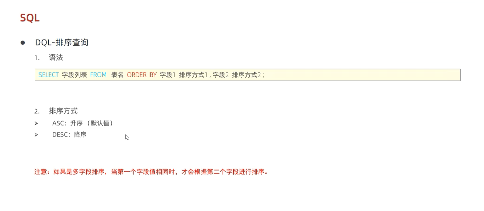 -- asc也可以省略,默认是升序