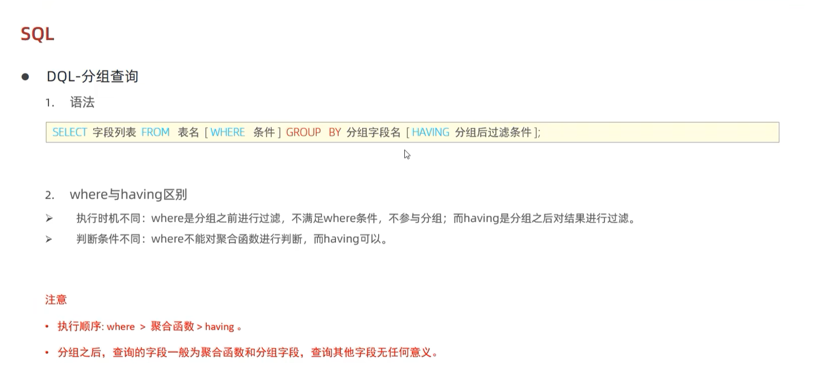 💡 关键区别 :WHERE在分组前过滤数据,HAVING在分组后过滤结果。