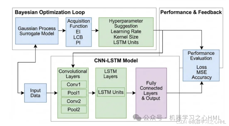 - 贝叶斯迭代: 优化器根据当前的表现,建议下一组超参数(如:学习率、LSTM 隐藏单元数),并重新开始训练,直到找到最优解。