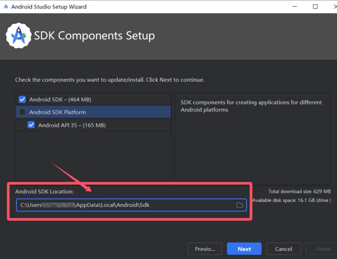 4)记住SKD的路径(该路径是ANDROID_HOME,类似JAVA_HOME)