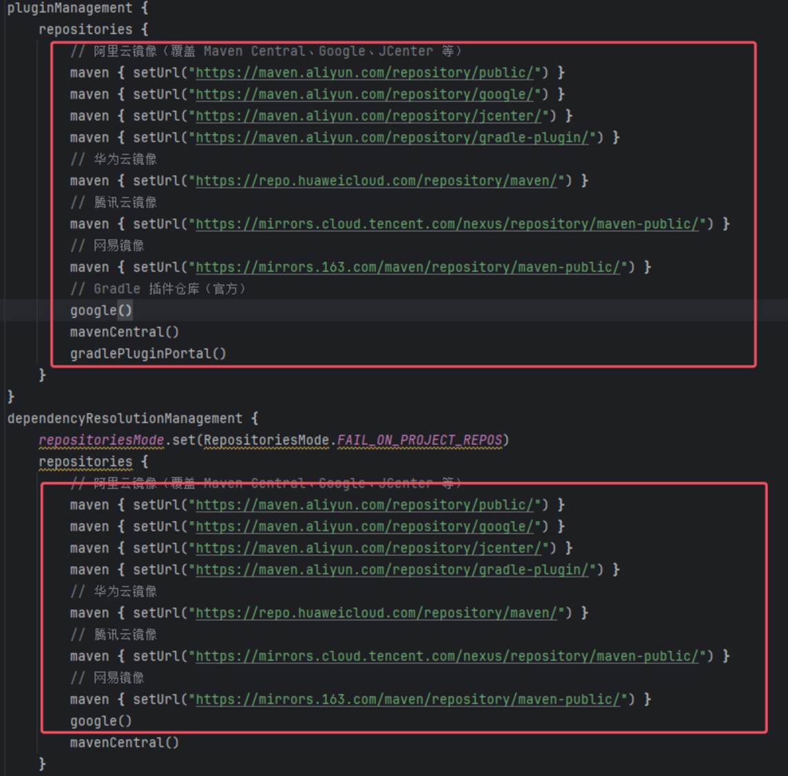 maven { setUrl("https://mirrors.cloud.tencent.com/nexus/repository/maven-public/") }