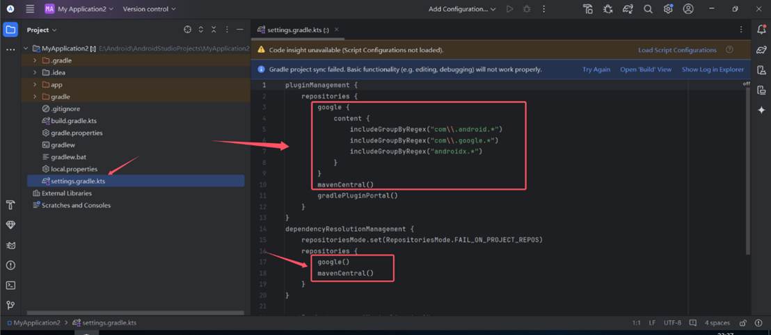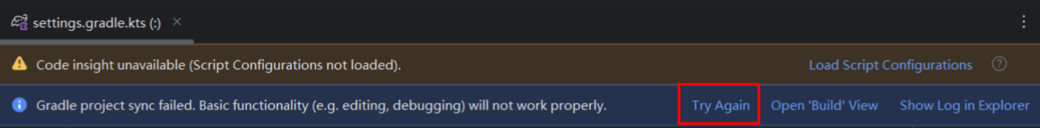 修改文件settings.gradle.kts后,会出现Try Again按钮