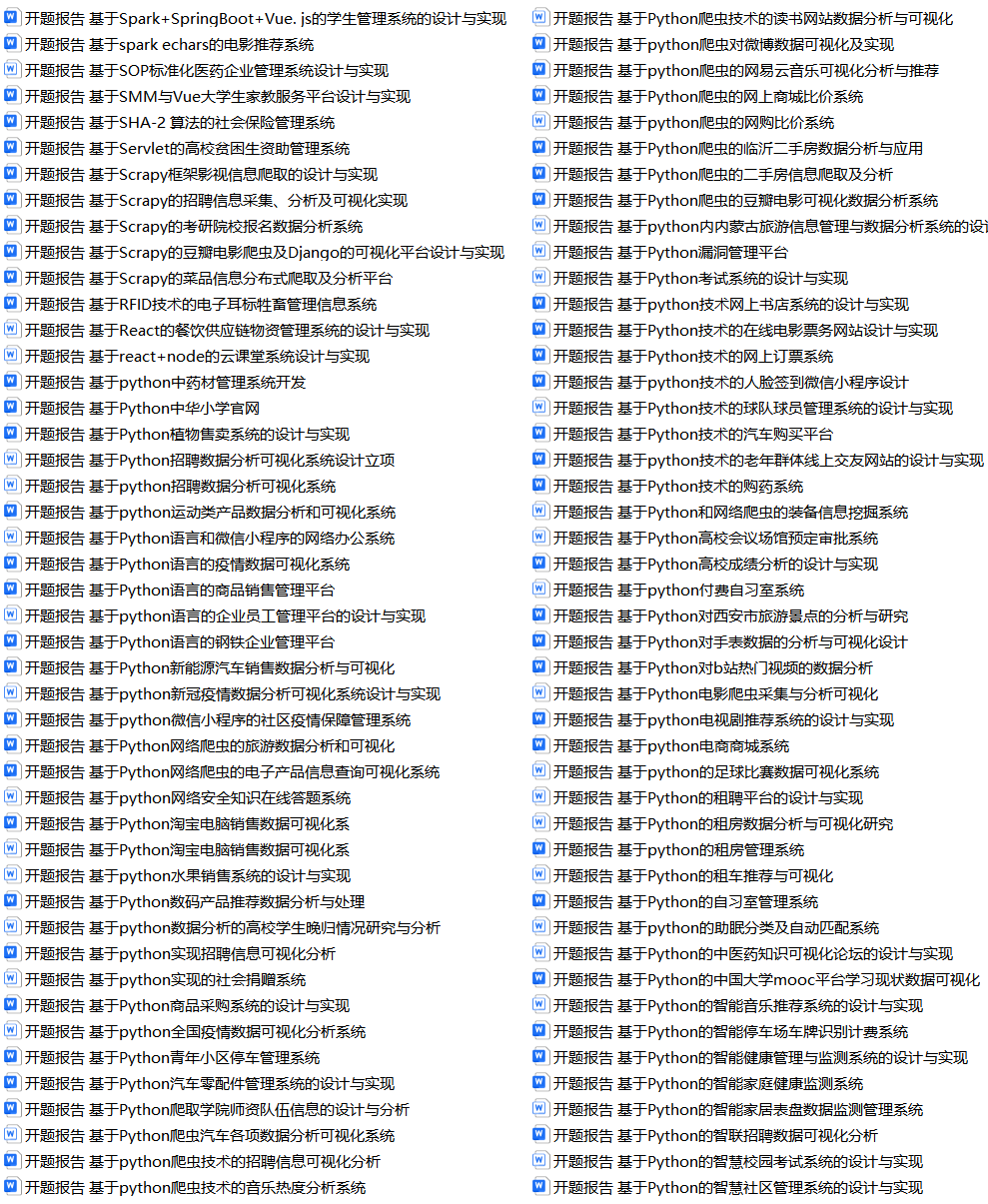 有时间和有基础的同学,建议自己多花时间找一下资料(开题报告、源码)自己独立完成毕设,需要开题报告内容、源码参考的,可以联xi慕婉,没有选题的也可以联系我们进行帮你选题、定功能和建议