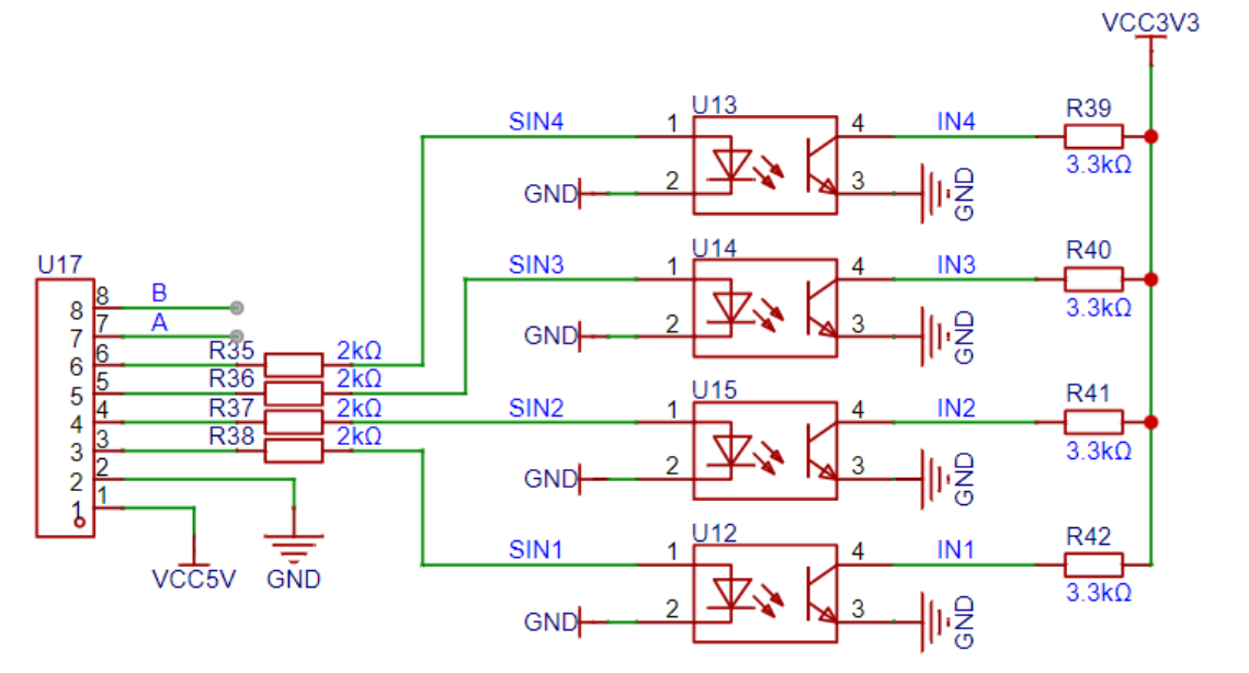 当输⼊端的LED导通时,会发出光信号,光信号被光电三极管接收并转换为电信号,从⽽在输出端产⽣相应的电平变化。由于光信号传输