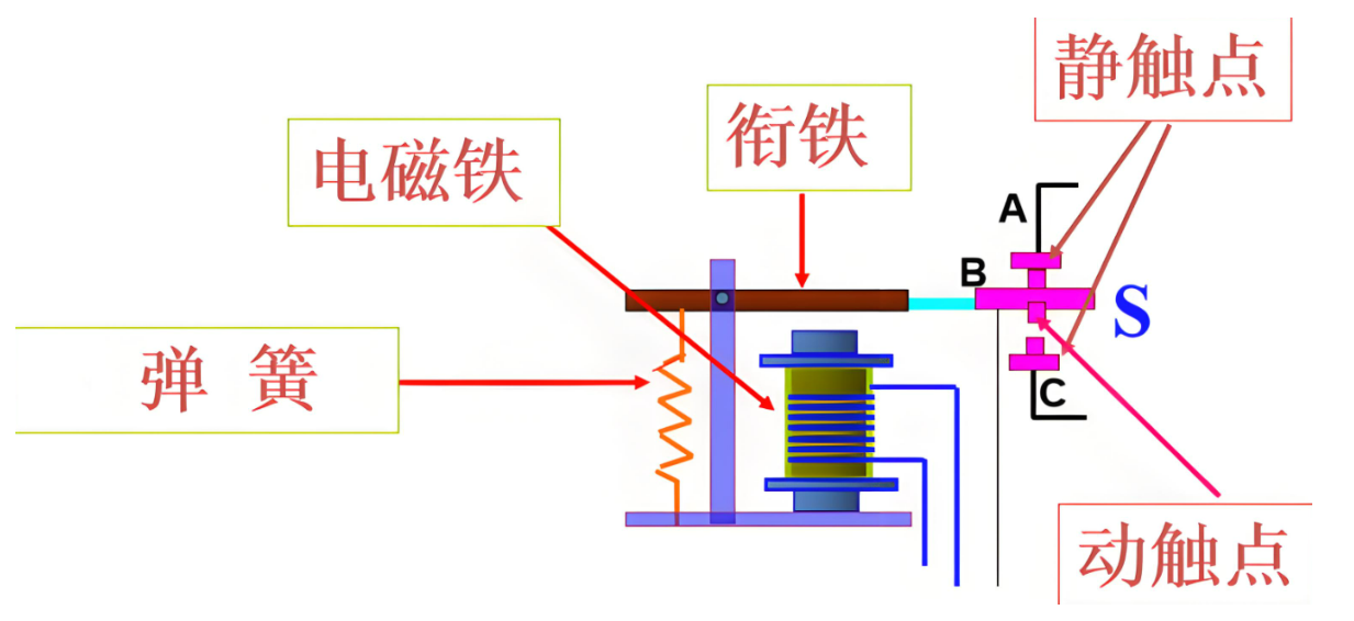 当控制电路断电时,磁场消失,弹簧将动触点拉回初始位置,被控电路恢复到原来的状态。