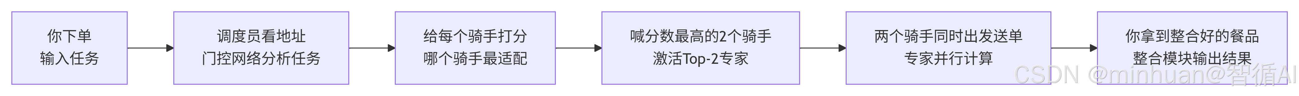 - 骑手 = 专家网络:每个都是小神经网络,各有专长(比如有的擅长处理文本、有的擅长算数学);