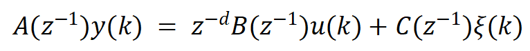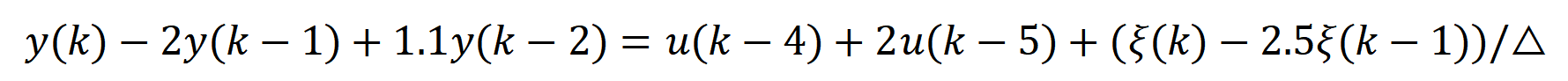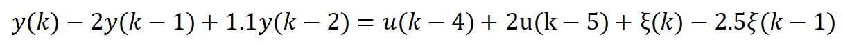 y(k) = -A(2:na+1)*[y(k-1);y(k-2)]+B*[u(k-4) u(k-5)]'+C*[u_noise(k) u_noise(k-1)]';