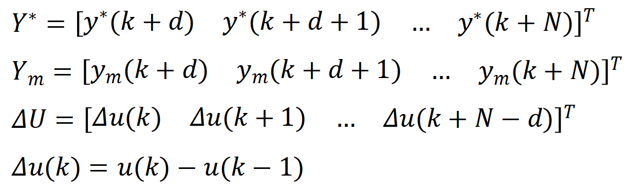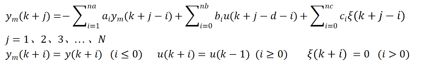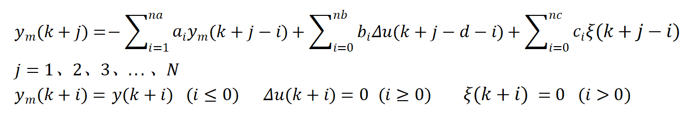 其中的d是纯延时环节,N为预测长度。ym是由过去的控制输入和输出确定的