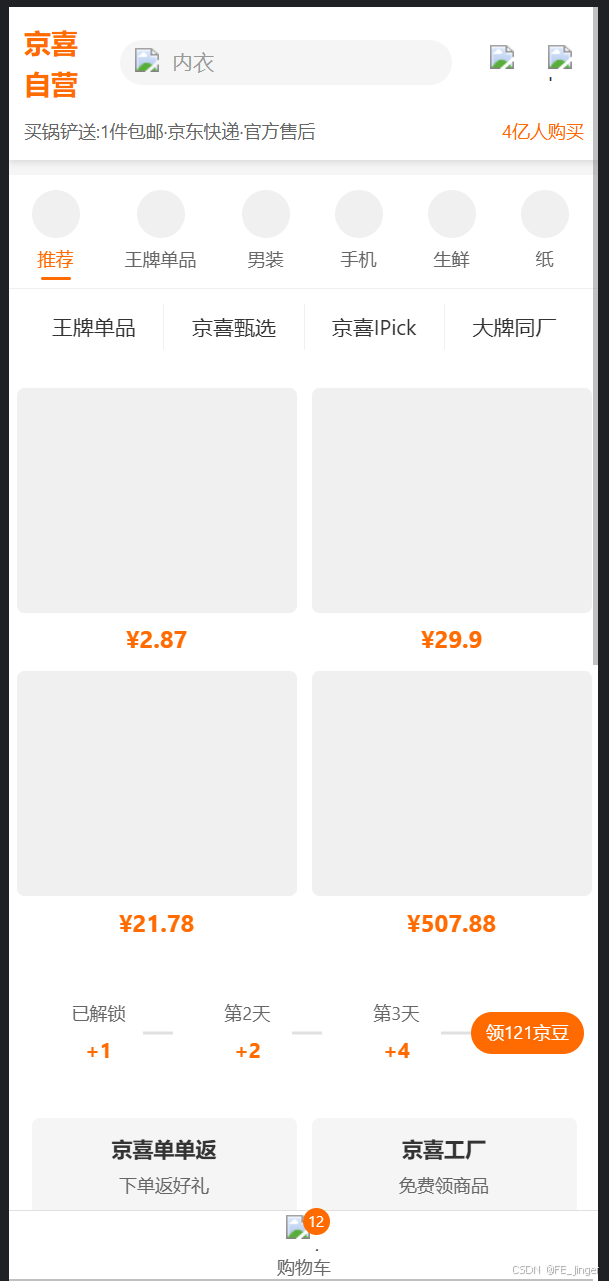 以京东京喜移动端应用的首页为例,详细阐述页面实现过程: