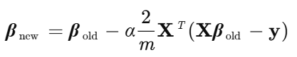 \\nabla_{\\boldsymbol{\\beta}} J(\\boldsymbol{\\beta}) = \\frac{2}{m} \\mathbf{X}\^T (\\mathbf{X} \\boldsymbol{\\beta} - \\mathbf{y})