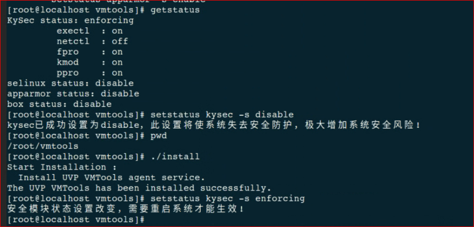 FusionCompute平台上银河麒麟高级服务器V10虚拟机安装vmtools报错输出提示: