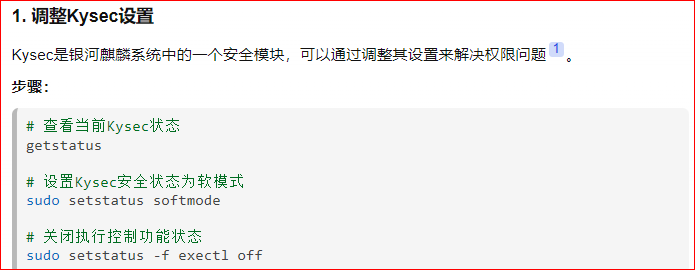如果Kysec status为disable,代表已关闭kysec;如果还是不能执行,那么可能是其他原因。