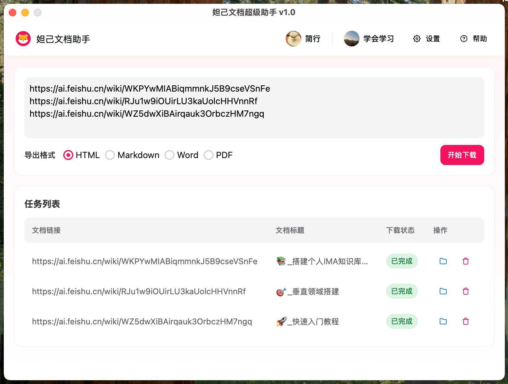 后来发现个桌面工具,专门干这事的,直接把飞书文档导出成Markdown格式,连那些设置了限制的文档都能导。