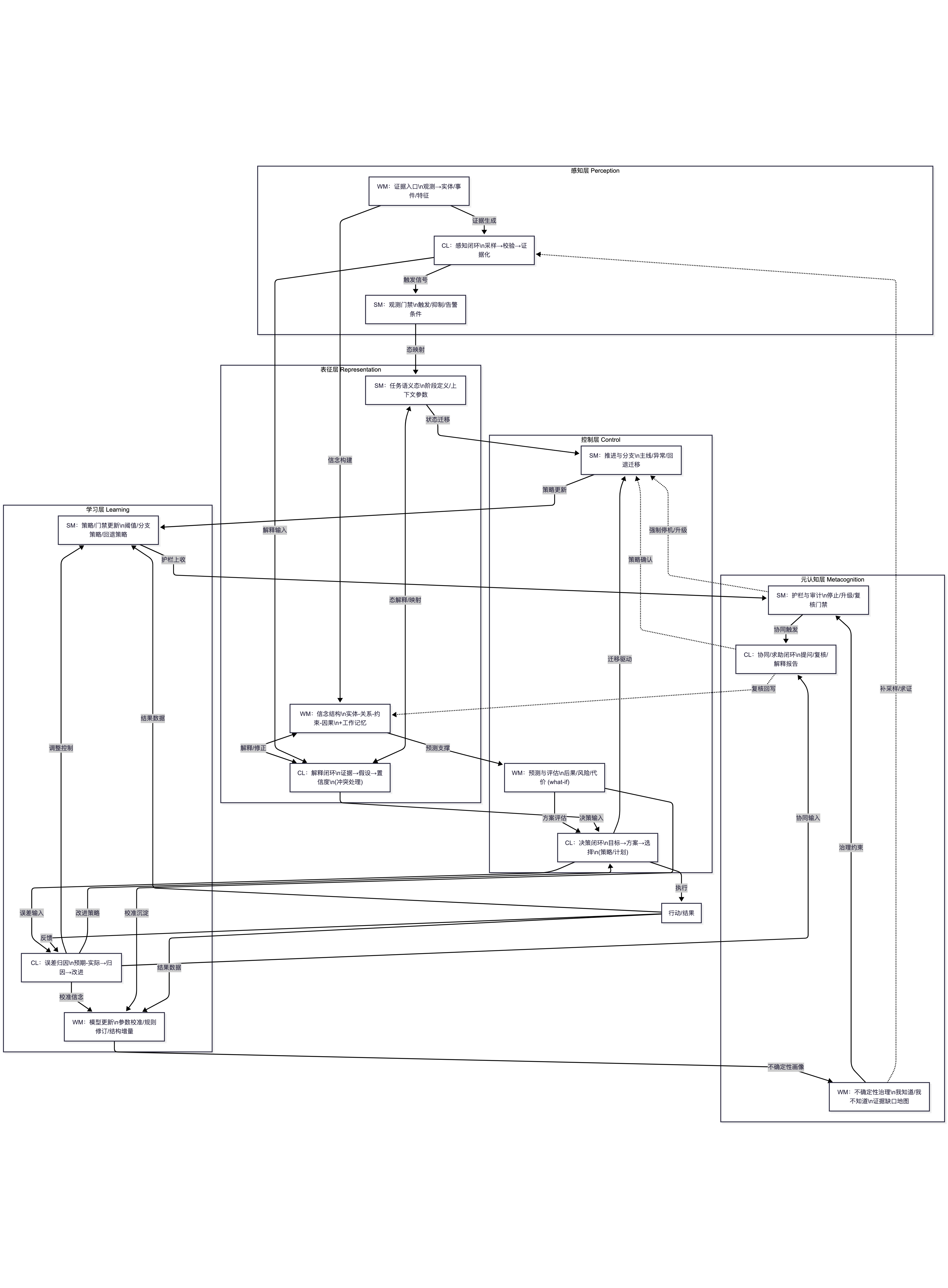 学习层(Learning/Adaptation):从反馈更新世界模型与策略(参数更新、规则修订、结构增量)。