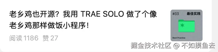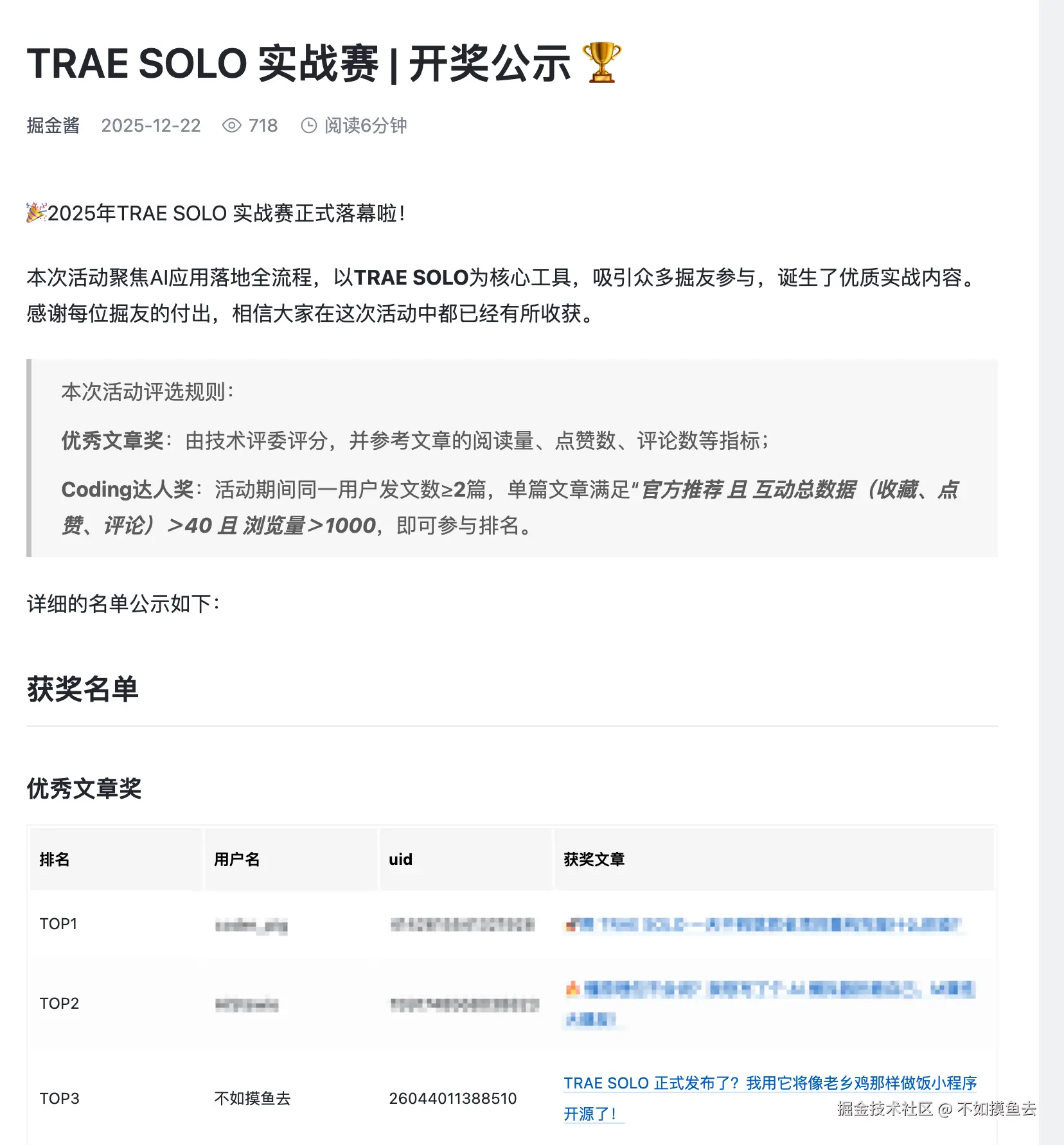 这篇文章则获得了 TRAE SOLO 实战赛的第三名。