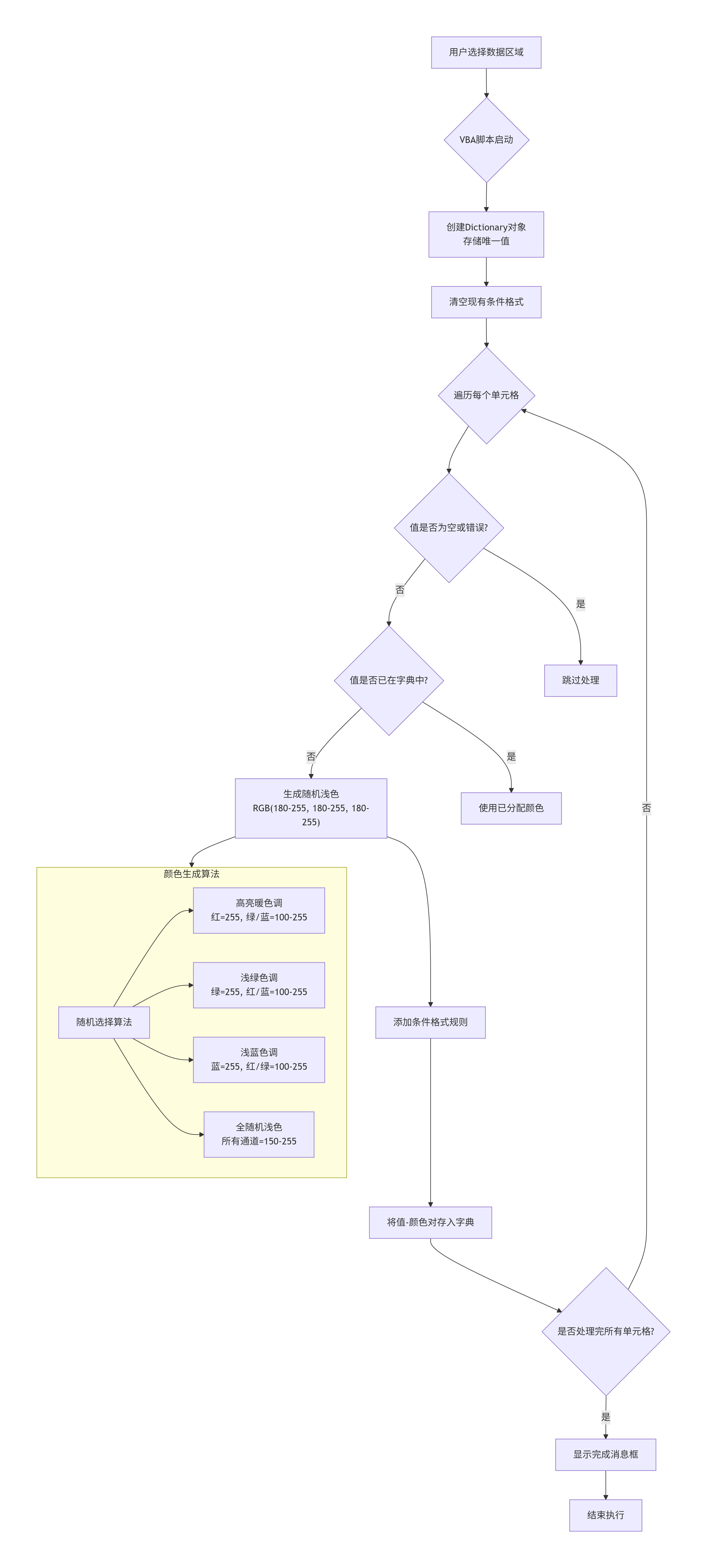 MsgBox "已成功为 " & dict.Count & " 个不同值标记了随机浅色背景!", _