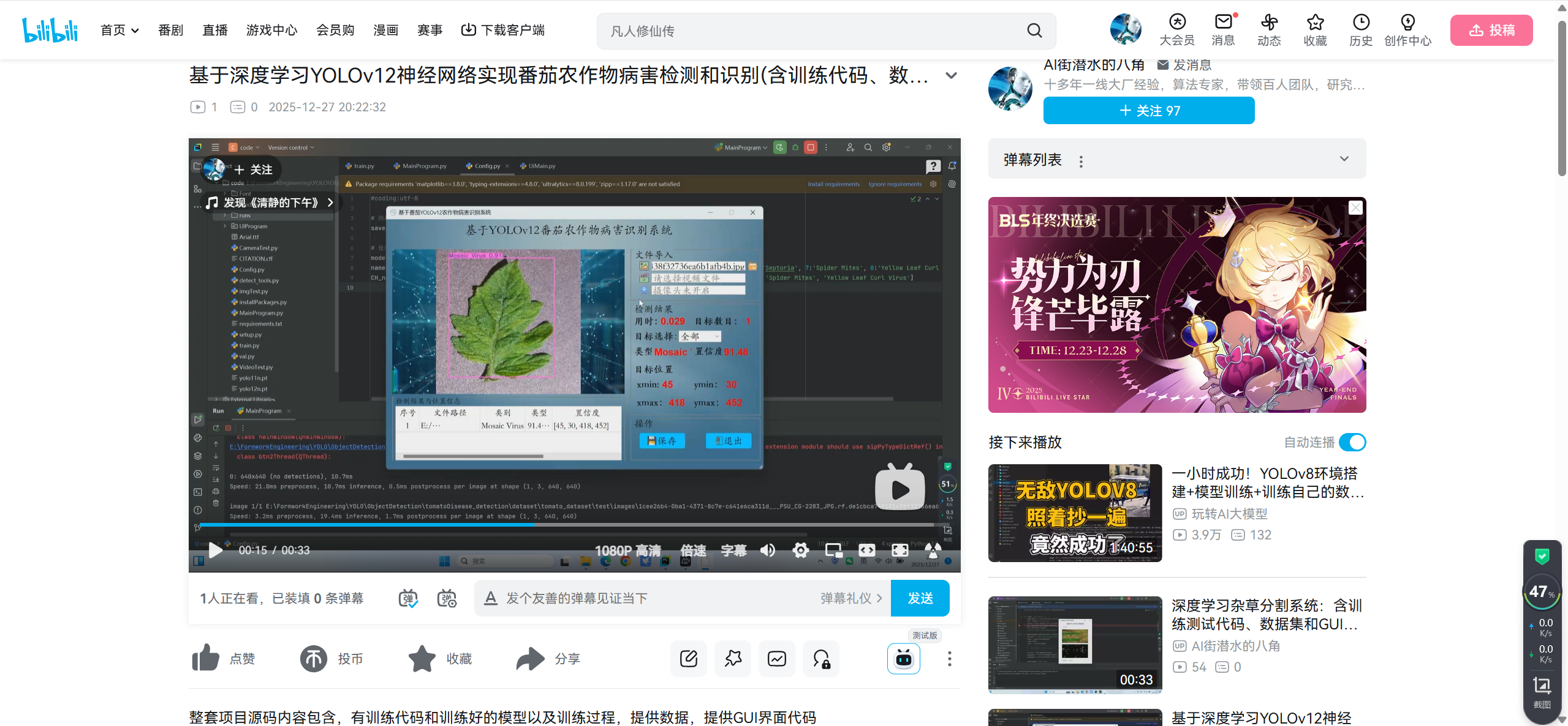 参考文章:番茄农作物病害检测和识别3:基于深度学习YOLOv12神经网络实现番茄农作物病害检测和识别(含训练代码、数据集和GUI交互界面):