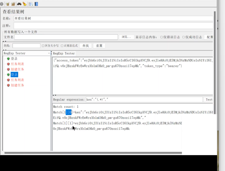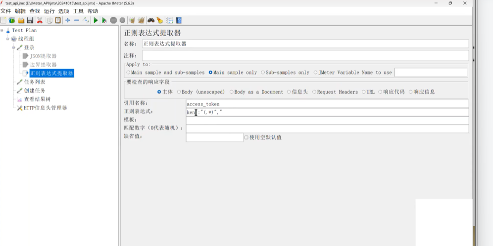 1.创建:上一个接口,添加后置处理器:提取数据+创建变量
