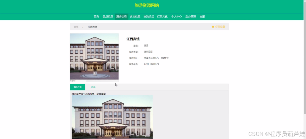 图5-4酒店信息界面图【在酒店信息页面通过填写酒店名称、图片、星级、酒店类型、酒店地址、联系电话等信息进行点我收藏操作,如图5-4所示。】