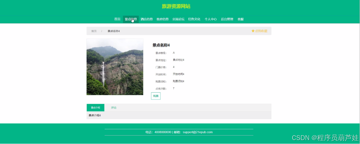 图5-3景点信息界面图【景点信息,在景点信息页面通过填写景点名称、景点图片、景点等级、景点地址、门票价格、开放时间、购票须知等信息进行购票,如图5-3所示。】