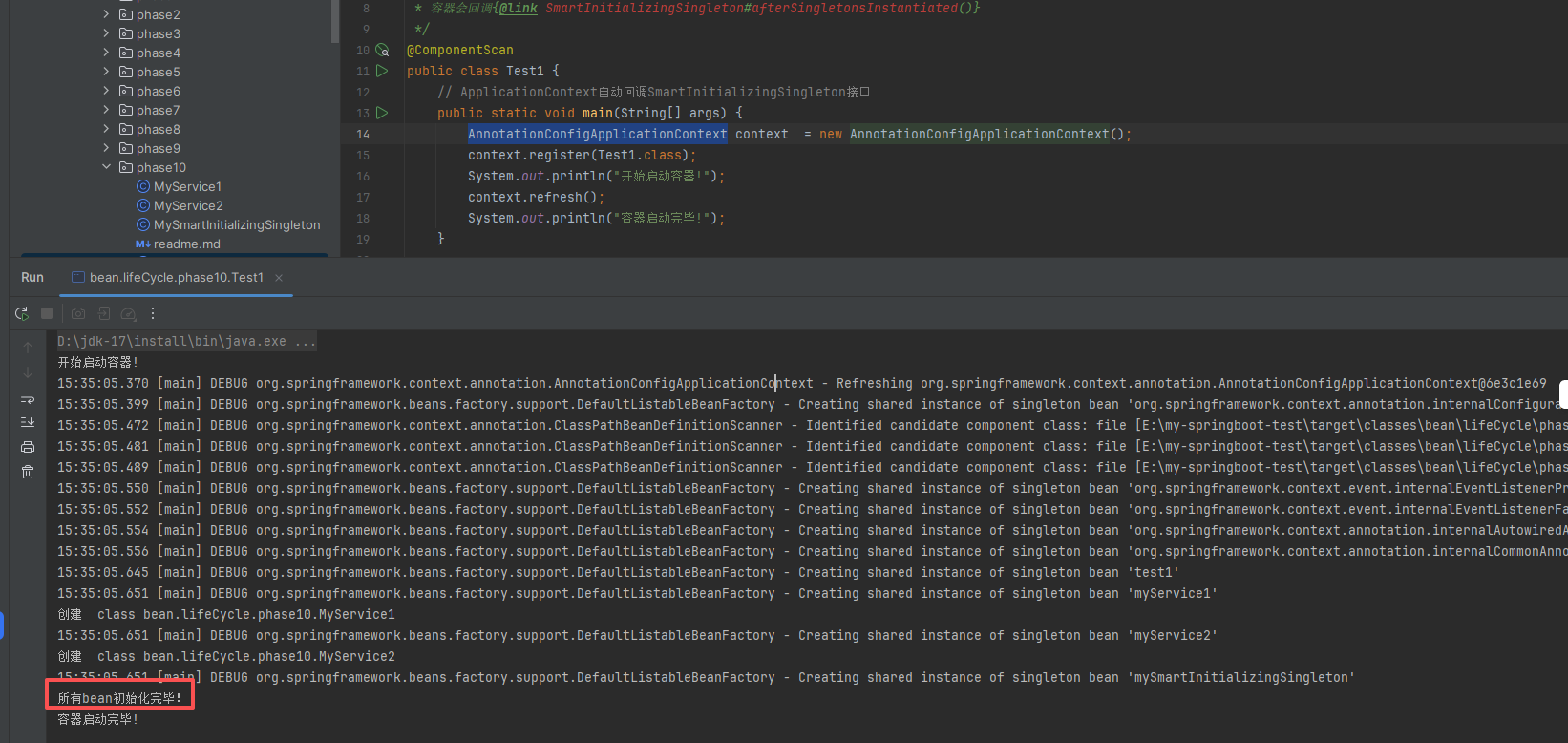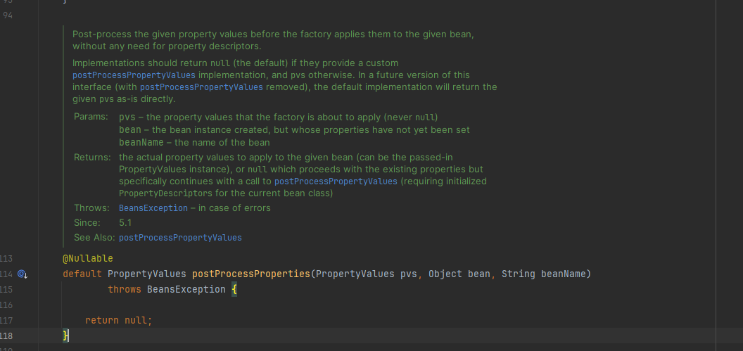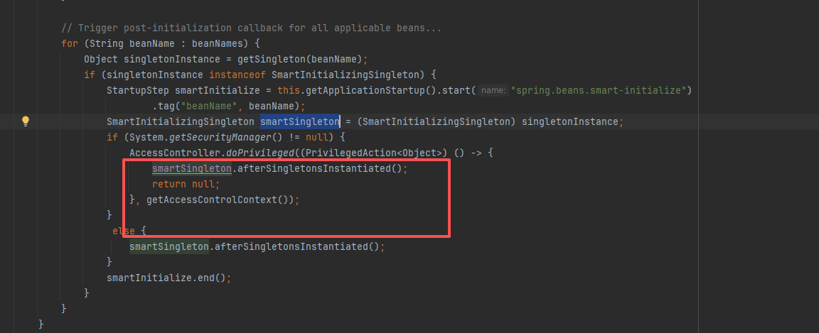 先说一下:当到方法的时候,spring容器中已经完成了所有Bean的注册