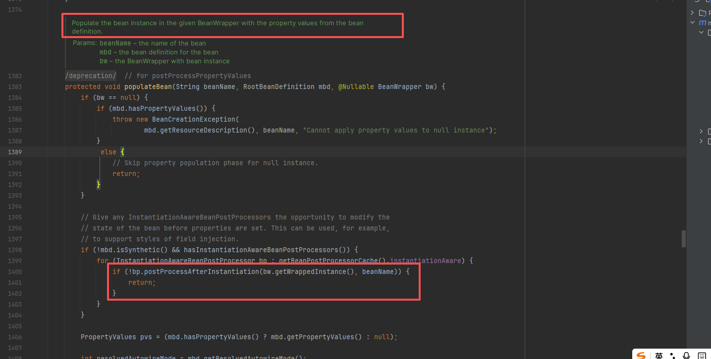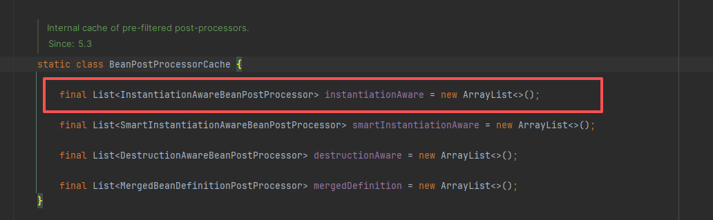 内部比较长,大家可以去看一下源码,这个方法内部主要用到了4个BeanPostProcessor类型的List集合。