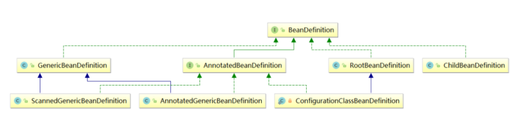BeanDefinition是个接口,有几个实现类,看一下类图